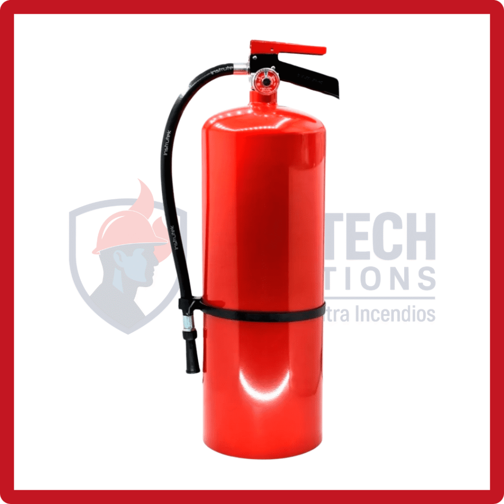 El tipo más versátil y común. Ideal para oficinas, comercios e industria ligera. Efectivo contra fuegos Clase A (madera, papel), B (líquidos inflamables) y C (equipos eléctricos).