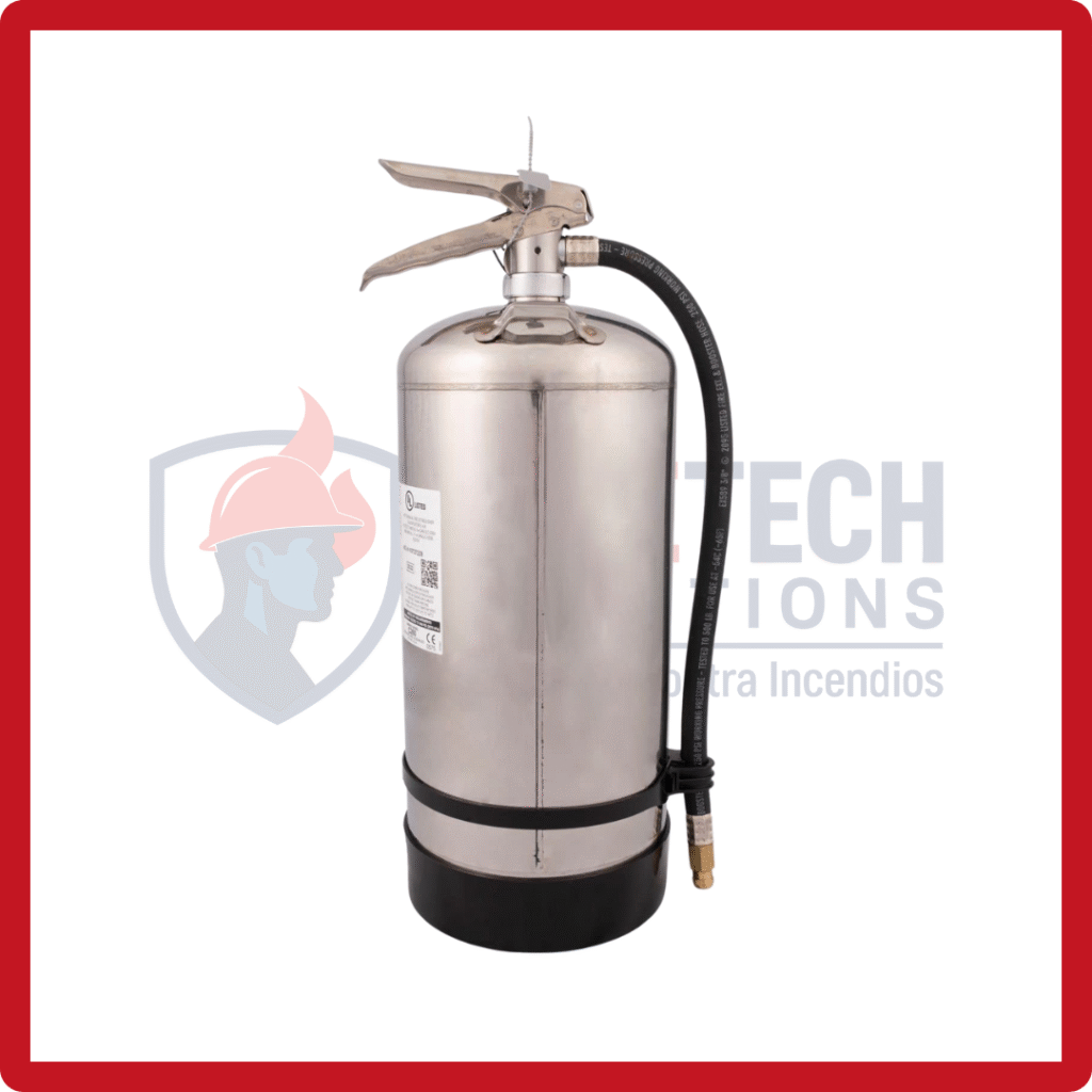 Indispensable para cocinas comerciales. Especialmente diseñado para sofocar fuegos de aceites y grasas calientes (Clase K), como los de freidoras y planchas.