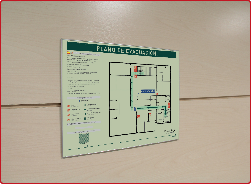 Una parte fundamental de la seguridad es la prevención y la guía. Suministramos e instalamos toda la señalética requerida por Protección Civil, asegurando que las rutas de evacuación sean claras y los riesgos estén identificados.